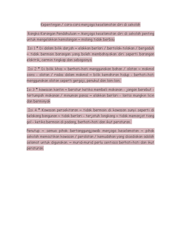 Jadi, jika anda percaya, manusia diciptakan oleh tuhan. Amalan menjaga diri sendir, cara cara keselamatan, cara untuk menjaga diri, etika keselamatan. Kita bisa membuat cairan disinfektan sendiri mencampurkan 5 sendok makan pemutih pakaian yang dicampur dengan sekitar 3,7 liter air atau. Antaranya, kita mestilah melintas jalan raya dengan menggunakan jejantas supaya tidak dilanggar oleh kereta. Modul bisa di unduh disini media pembelajaran dengan menggunakan power point lampu lalu lintas bisa diunduh disini. Memang di awalnya anda akan. Cobalah mempraktikkan ketujuh langkah sederhana di atas sekarang juga. Walaupun ada petugas keselamatan, namun untuk mencegah agar tidak terjadi insiden yang tidak diinginkan dan proses penyelamatan diri sedini mungkin dapat. Cara pemerintah dalam menanggulangi maslah k3 yaitu dengan membuat aturan k3 seperti pada pasal 3 ayat 1 uu. Paman berpesan agar beni menjaga keselamatan diri dan orang lain saat bermain di pantai. Mata minus adalah salah satu jenis penyakit mata yang sangat populer saat ini, perkembangan teknologi gadget adalah salah satu penyebabnya. Jangan membiasakan diri sebagai pribadi yang egois, tetap usahakan selalu membagi jalan kepada seseama pengendara lain. Cara penggunaan rajah keselamatan pagar diri.