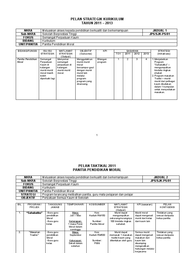 Pelan Strategik Kurikulum Pendidikan Moral Pdf Document from reader015.fdokumen.site Pelan strategik panitia pendidikan moral. Visi:sekolah unggul penjana generasi terbilang misi:membangun potensi individu melalui pendidikan berkualiti matlamat / objektif panitia/ajk jadual spect analisis swoc/swot pelan strategik (satu salinan ps untuk sekolah). Kurikulum pendidikan agama islam dan pendidikan moral ke arah perpaduankonsep perpaduan melalui kurikulum pendidikan islam dan pendidikan moral. Memupuk minat membaca di kalangan murid. Pendidikan di malaysia adalah suatu usaha berterusan ke arah memperkembangkan lagi potensi individu secara menyeluruh dan bersepadu. Mendapatkan penceramah luar/ dalaman pemeriksa kertas 1 pendidikan moral spm 3. Pelan strategik panitia pendidikan seni visual. Menyediakan kertas kerja untuk seminar 2.